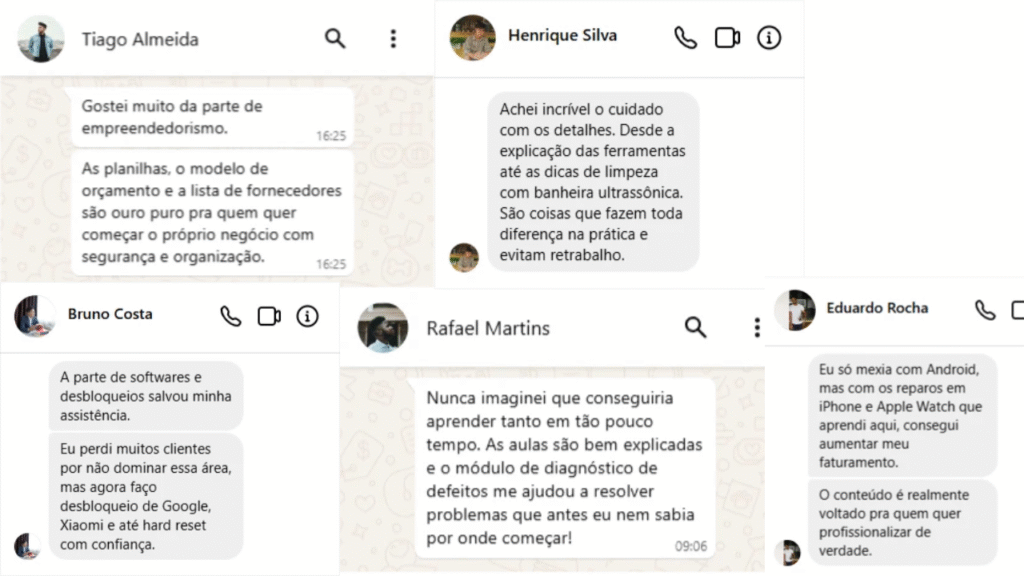 Se você quer iniciar na área de manutenção de celulares, mesmo sem experiência, o curso oferece base sólida, prática e aplicável para começar a atuar com qualidade e confiança.
